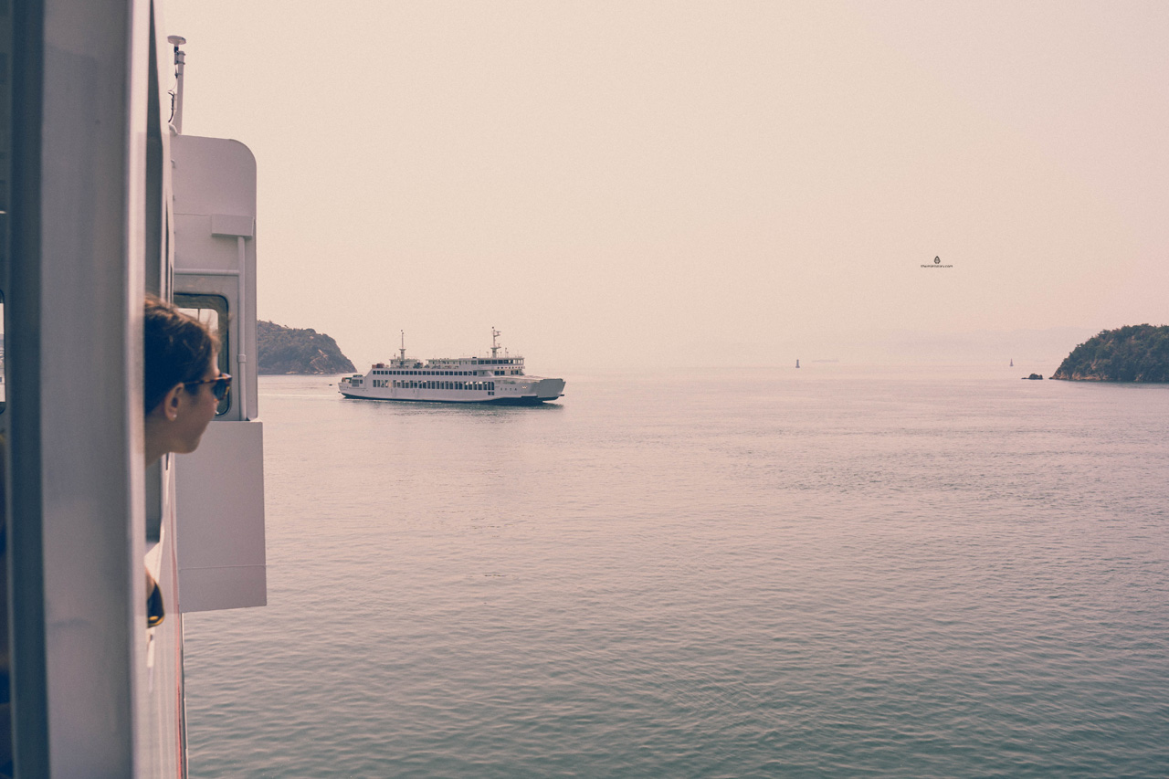 On our way back to the ferry, we drove trough Honmura port, where another delightful sight waited for us- the Studio Sanaa’s cloud-shaped port terminal building. Quite a cool spot to park your bike in. Again, the light, bubbly building fitted perfectly in calm, pastel surroundings of the port. There was also a cafe called Konichiwa which I regret not having time to have a drink at, because it was so Japanese and had a cute little terrace with 4 ice cream-colored stools. We had to catch the ferry for Uno port, so we kept on pedalling until we reached Miyanoura port where we said goodbyes to Naoshima and decided we’d be back.