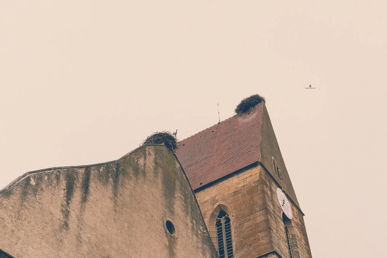 The storks, emblems of Alsace, are taking part in this fairy tale atmosphere by nesting on the roofs of Saint Peter and Paul church.